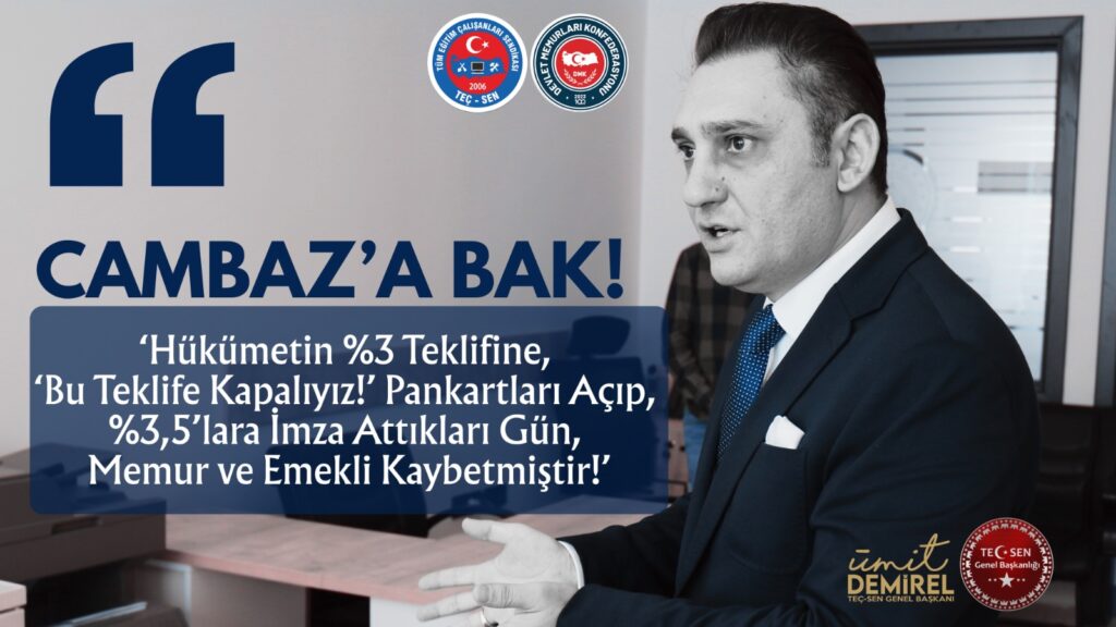 Tüm Eğitim Çalışanları Genel Başkanı Ümit DEMİREL Kamuradar’a yaptığı açıklamada memur ve emeklilerinin durumunu değerlendirdi.