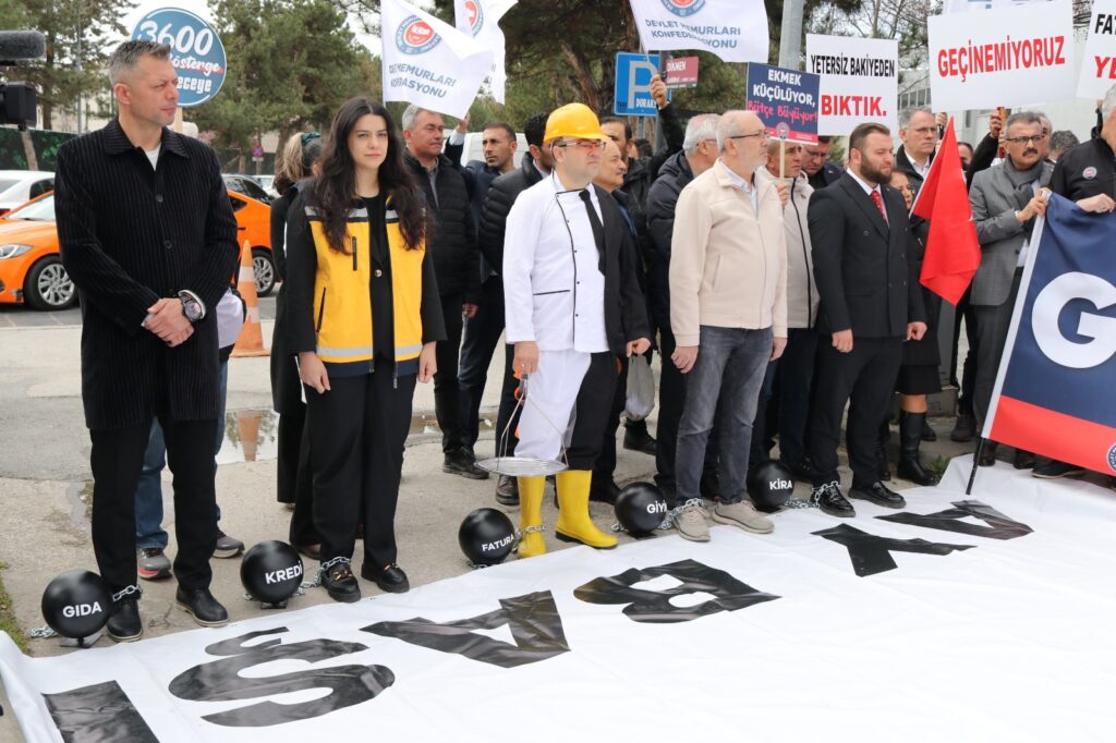 Devlet Memurları Konfederasyonu üyeleri, kamu çalışanlarının yaşadığı ekonomik zorluklara dikkat çekmek amacıyla Hazine ve Maliye Bakanlığı önünde eylem yaptı.